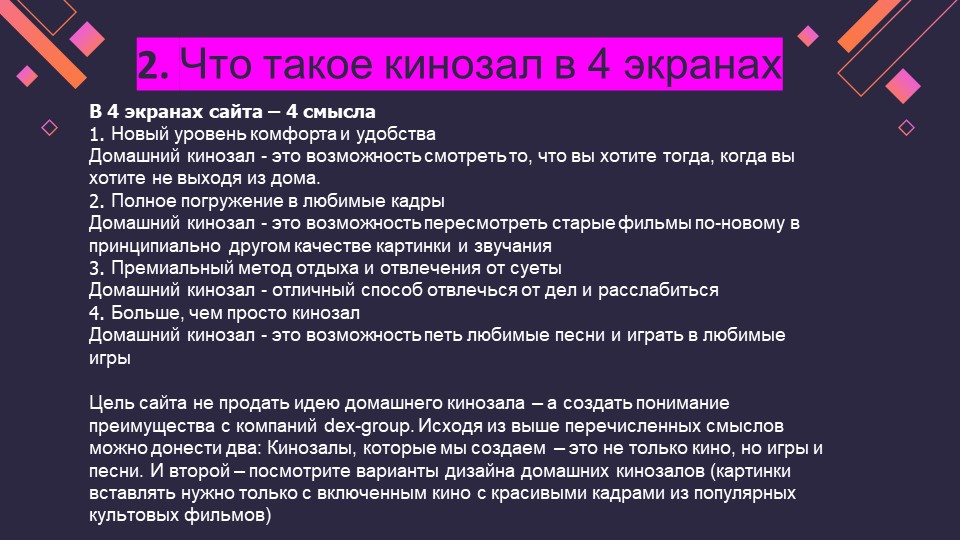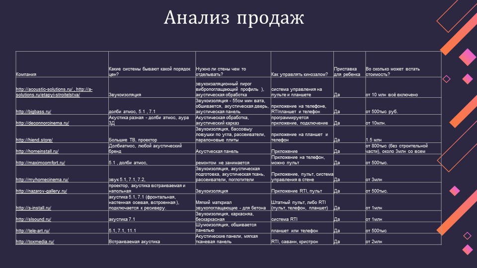 Защита стратегического маркетинга по строительству домашних кинотеатров